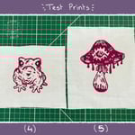 β Test prints are available to buy and are printed on a white lightweight 100% cotton fabric with burgundy ink and no seam. These can also be used as patches, decor, or other sewing projects. (for personal use only!)